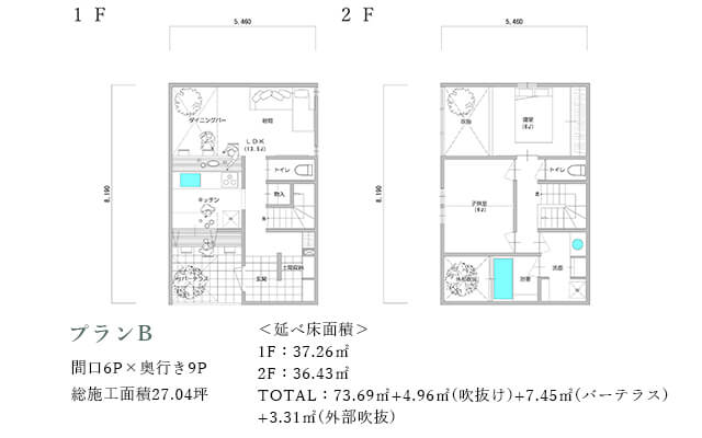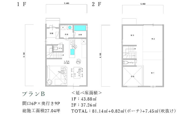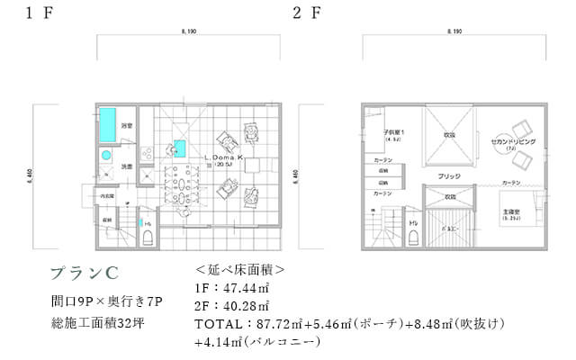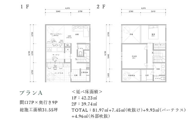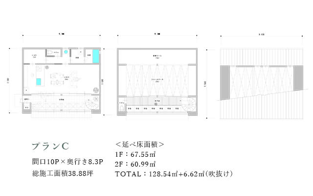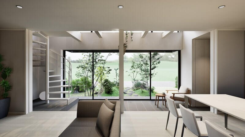 このプランは、周囲の環境に対して、プライバシーを確保しつつ空へと大胆に開放されている点が特徴です。