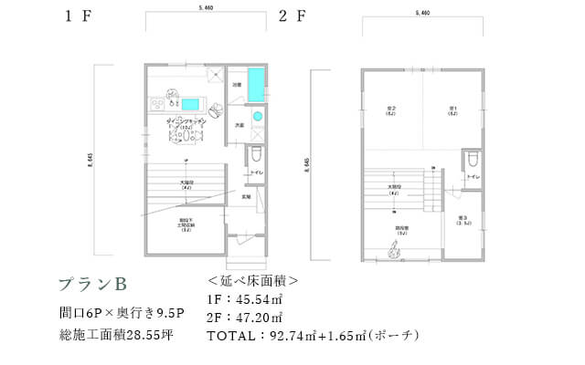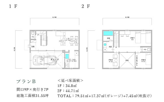 間口が小さく奥行きの長い敷地を想定した「type-L」。