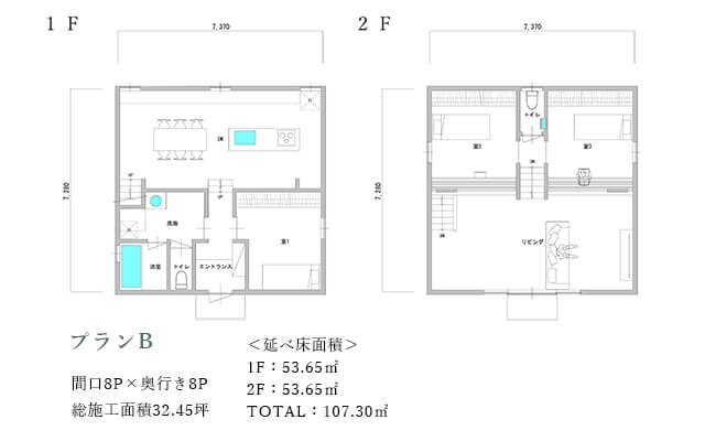 キッチンを中心としたシンプルで多目的に使える間取りです。