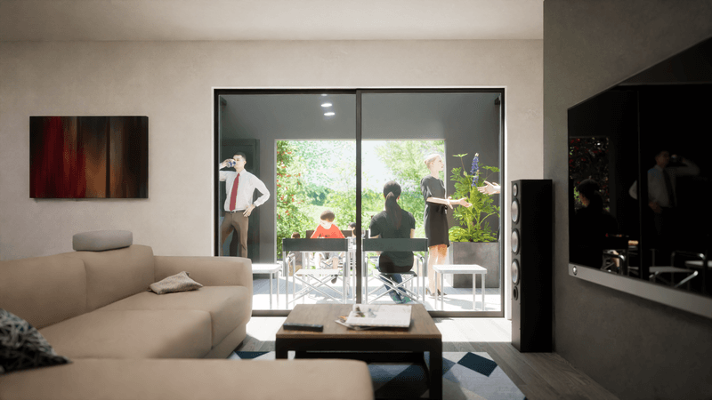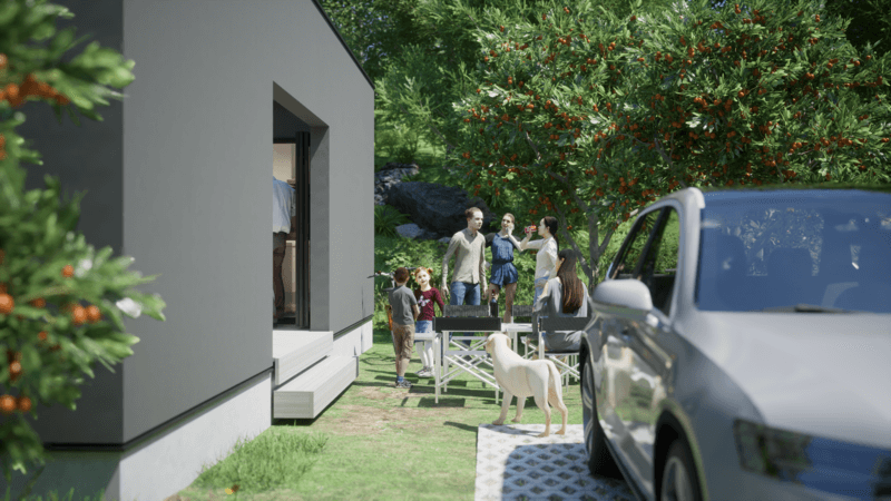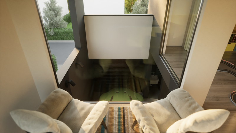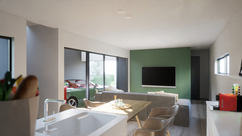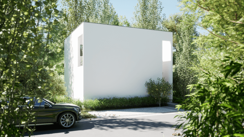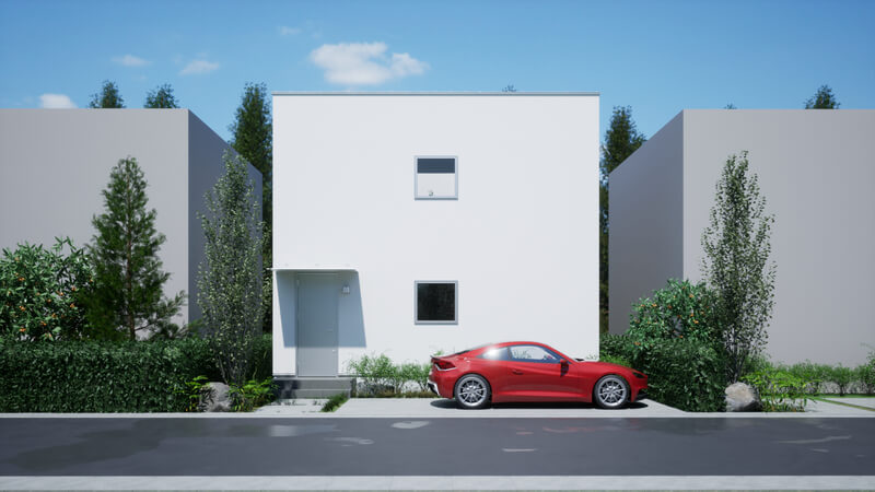 車からはもちろん、家の中からも楽しめるドライブインシアターや、車の中からもLDKの家族と団らんを共有できる空間設計、ガレージに居室のような心地よさを生み出す吹抜けなど、「車を居住空間」として捉えた発想により、「車」と「家」という垣根を超えた、かつてない暮らしをカタチにしました。