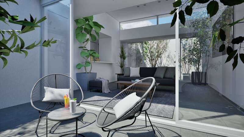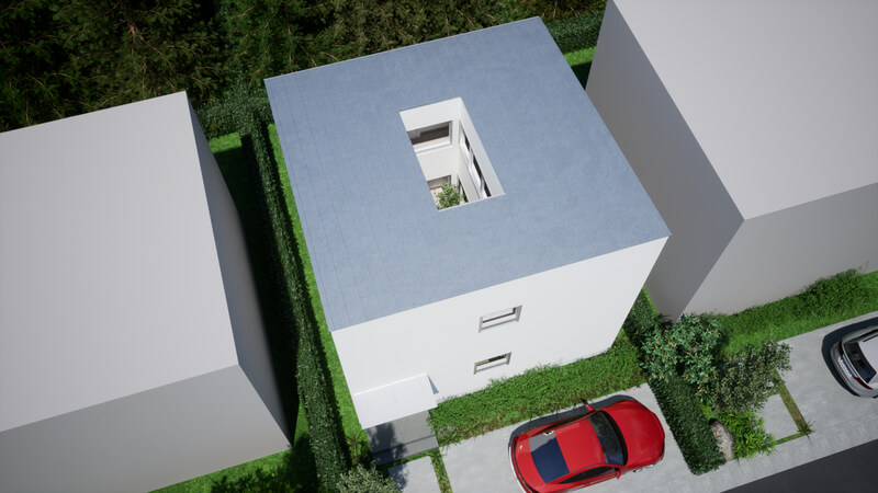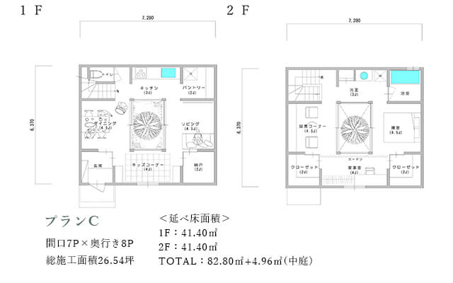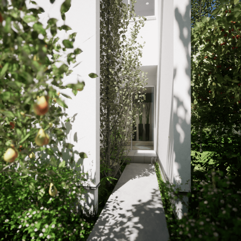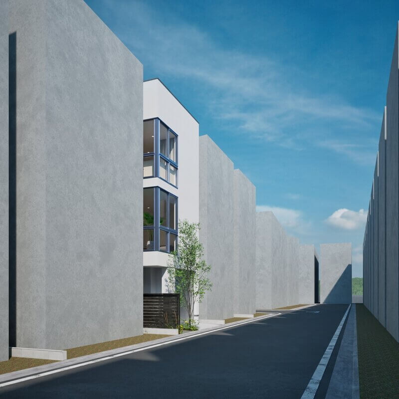 四方を建物に囲まれた旗竿地を想定した「type-C」。