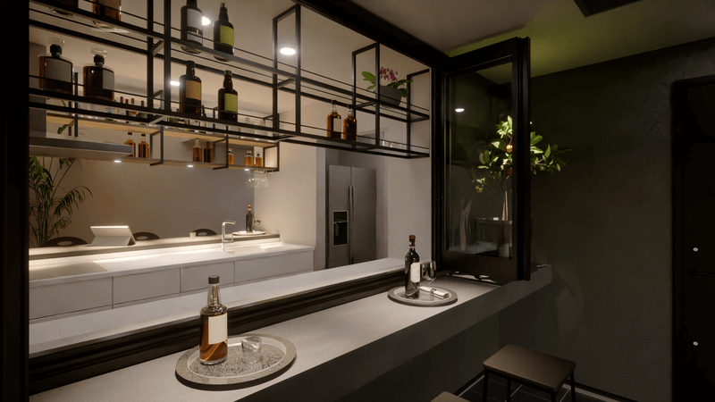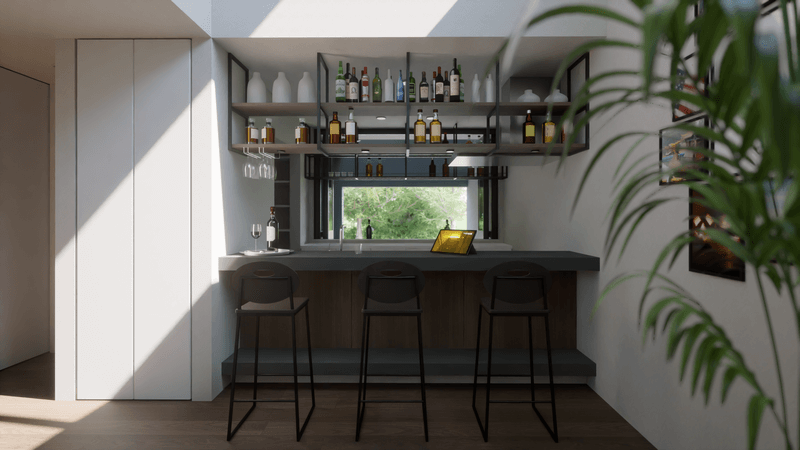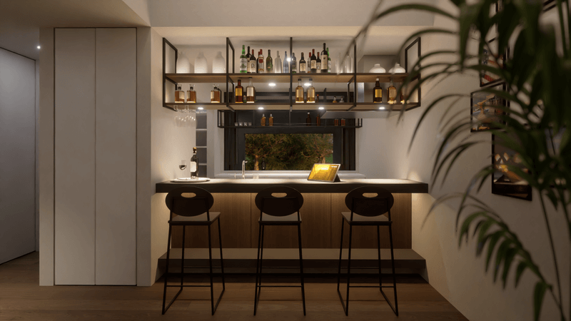 キッチンの前後にバーカウンターを配置。