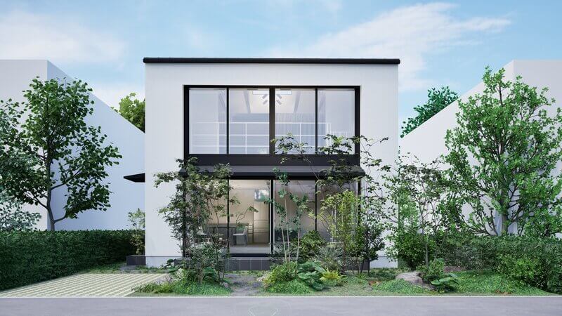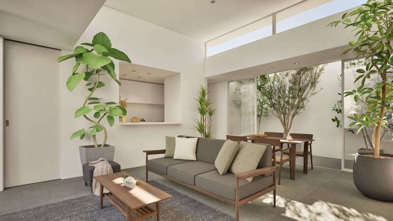 都市部や分譲地などの限られた敷地においても、自然の心地よさと開放感を存分にもたらす、現代の新たな平屋スタイルです。