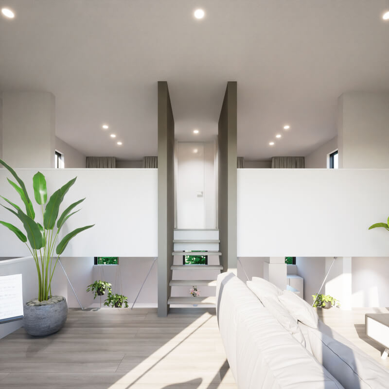 全ての居場所、全ての光の中心に、生活の舞台となる「大階段」を配した住まいです。