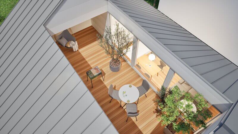 小屋裏を収納に、屋上をバルコニーにするなど、空間を余すことなく活用。