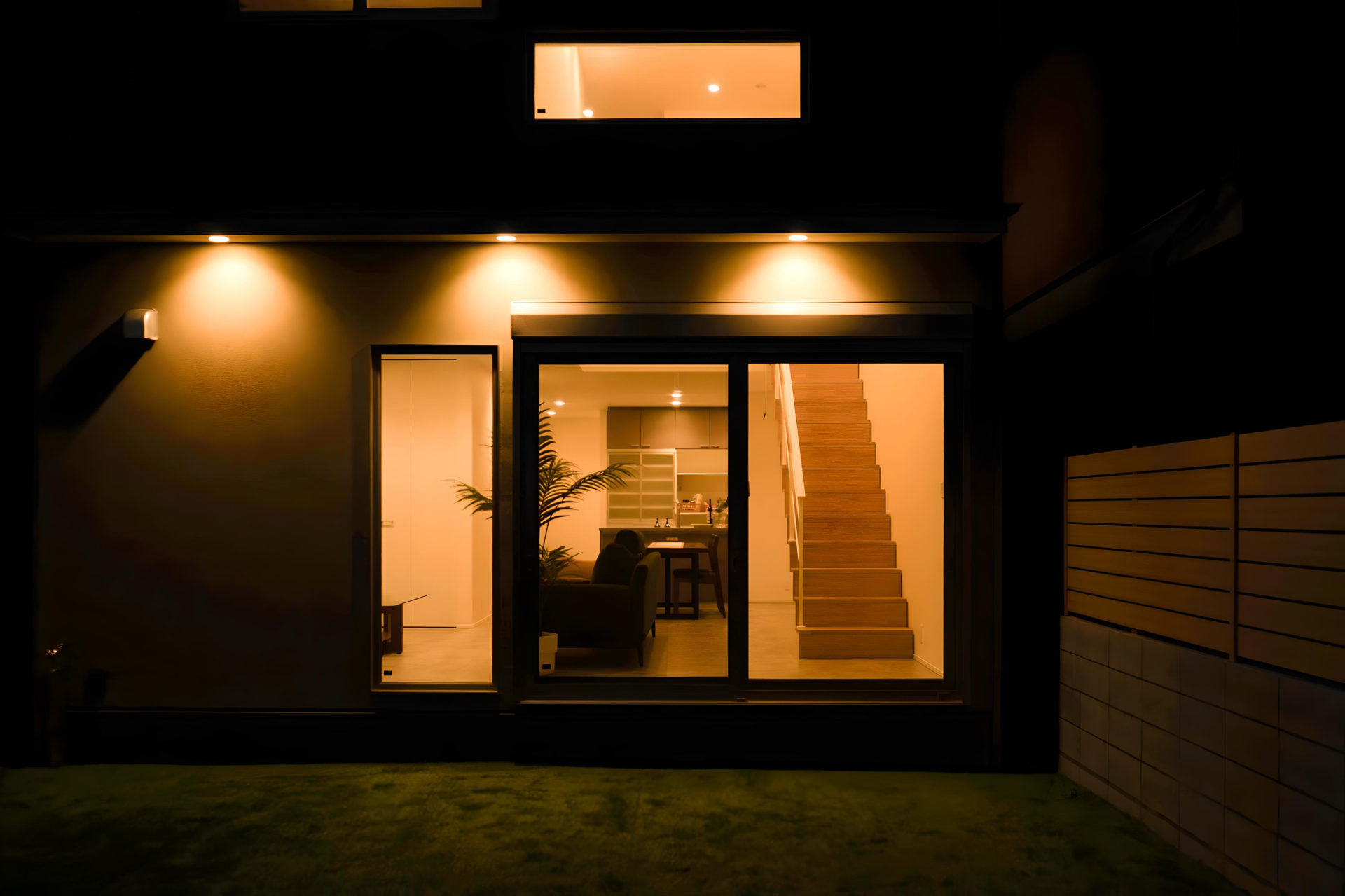 夜になるとライトアップされた外観が、より一層存在感を際立たせます。