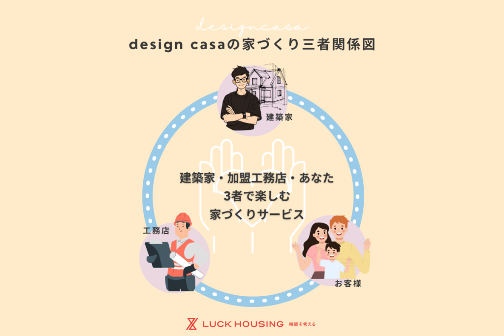 design casaの家づくりは、建築家・加盟工務店・あなたの“三者で楽しむ”スタイル。