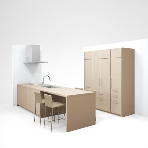 シンクの隣に冷蔵庫を隠して配置することができ、すっきりとコンパクトに導線が確保できます。