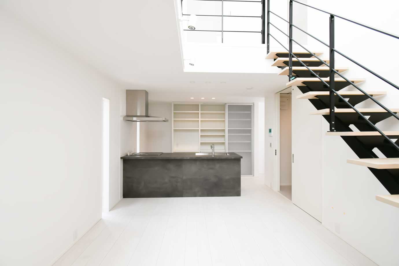 家探しをしていた時、一目惚れしたcasa cube。リビングの吹き抜けの天窓が大きく、日中は照明なしでも明るくて、過ごしていて気持ちが良いです。